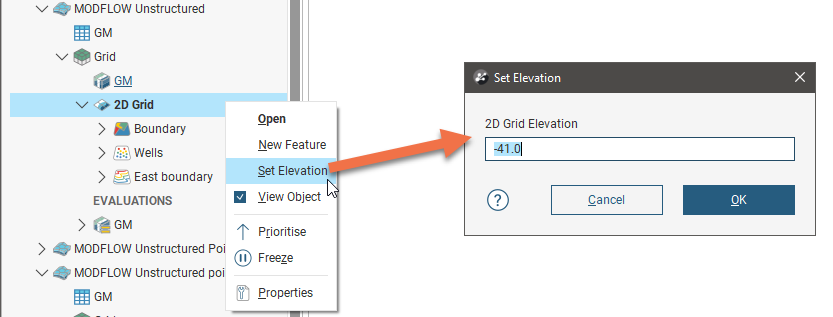 Before importing head values, you may wish to set a dry cell head value. To do this, right-click on the model’s 3D grid object (