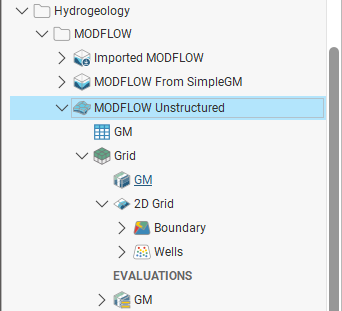 In the project tree, MODFLOW models are made up of a grid object (