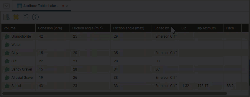 This column order will be used when the attribute table is exported along with the geological model when using the LFM format.