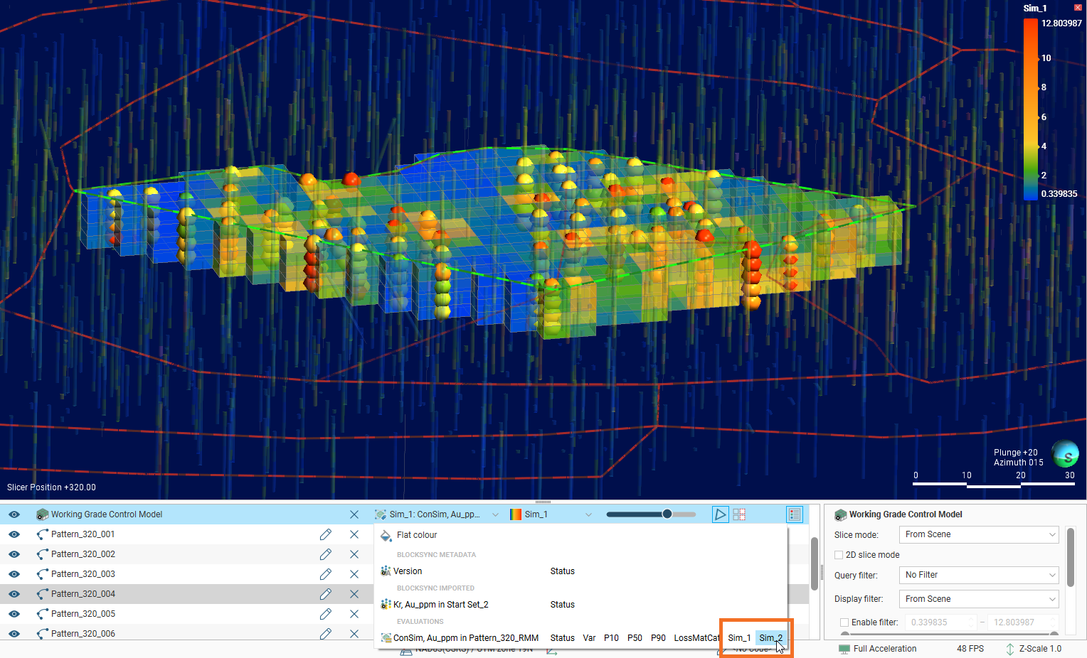 Once the simulation process is complete, simulation outputs are returned back into the Leapfrog Energy block model as a new set of columns.