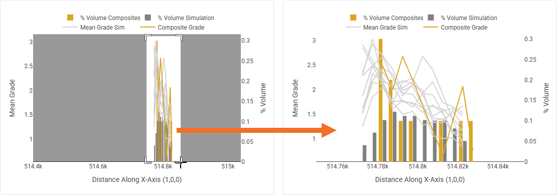 Not overclipping data is important for accurate conditional simulation as extreme valid values are relevant to the simulation. Correct statistical reproduction of high grade values is of critical importance. Instead of clipping off outliers, all the data should be retained unless there are sound reasons for clipping input values.