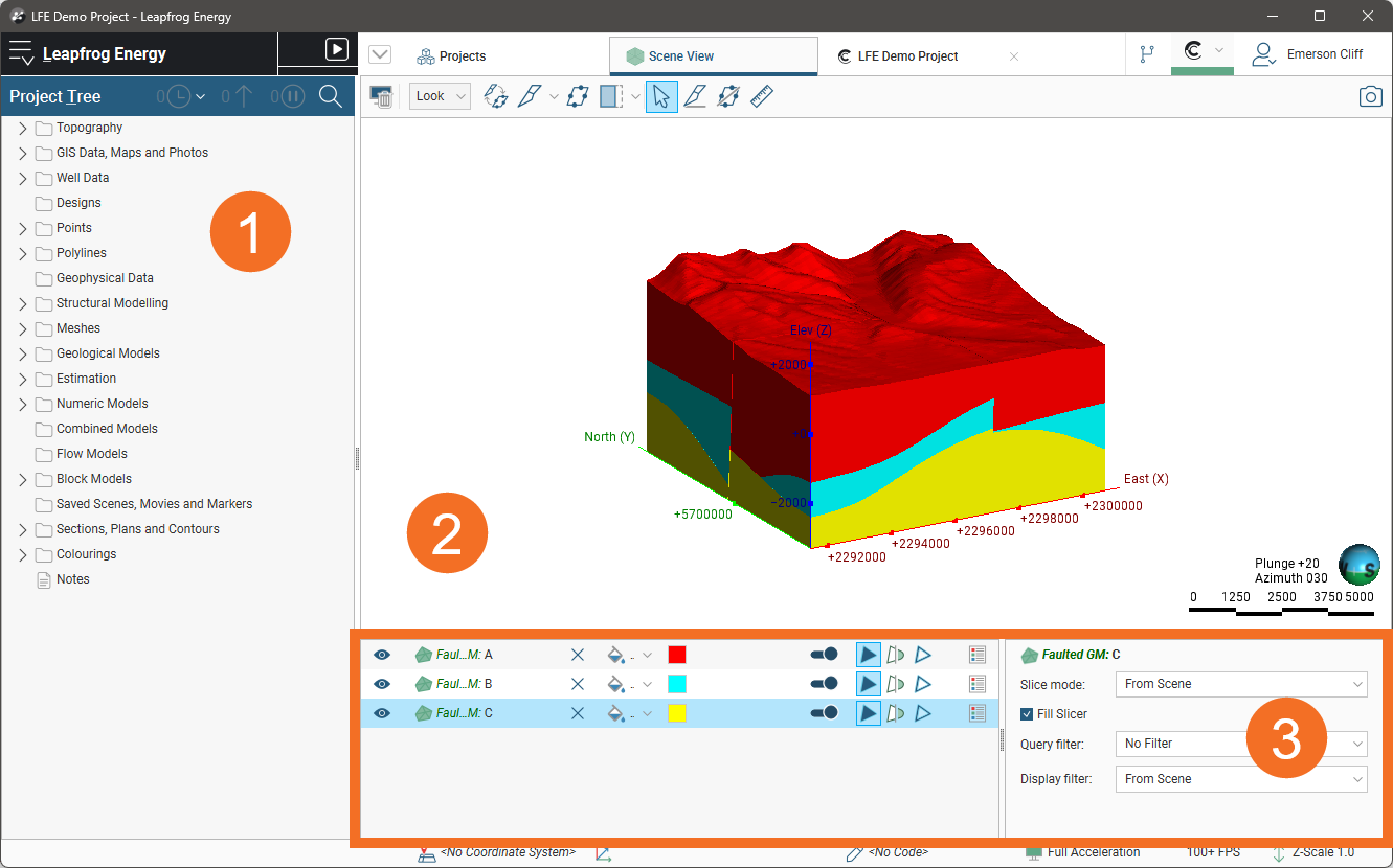 This topic provides an overview of the different parts of the Leapfrog Energy window, which is divided into three main parts:
