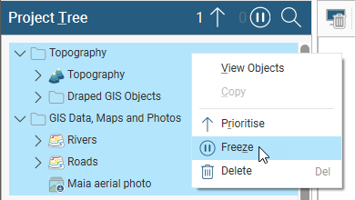 To freeze an object, right-click on it the project tree and click the Freeze button (
