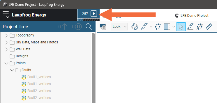 The processing button next to the Leapfrog Energy menu shows how many tasks Leapfrog Energy is currently processing: