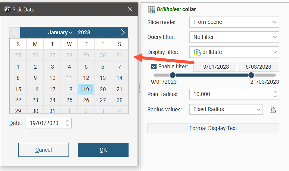 In Leapfrog Energy, you can define query and volume filters for data tables that select a subset of data for future processing; this is described in the Filtering Data topic. Filters can also be used when displaying data in the scene.