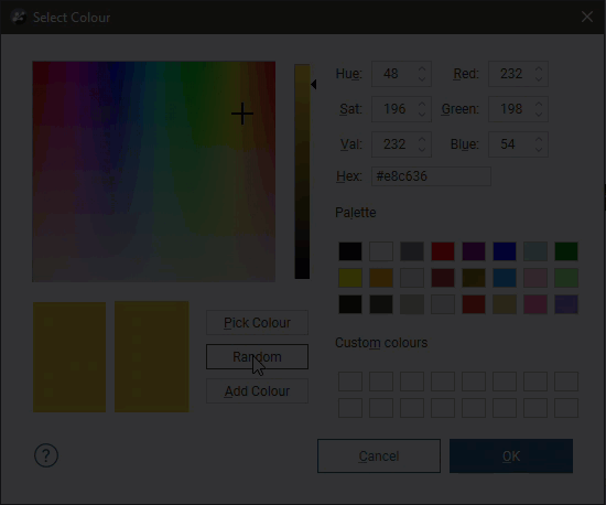 - Click on the Random button to set a random colour.