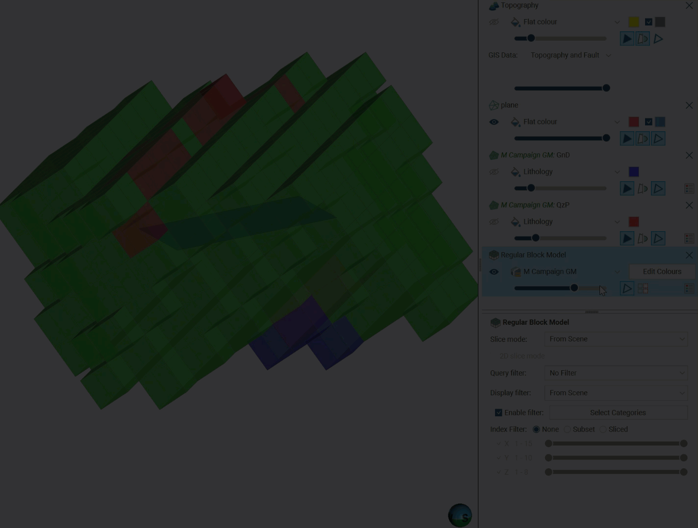 It is a good idea to use larger values for the Block size as processing time for large models can be considerable. Once you have created a block model, you can change its properties to provide more detail.