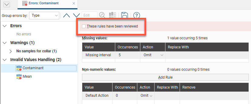 Once you have reviewed the rules that will be applied to the column, tick the These rules have been reviewed box and click OK. The rules will be applied and used in further processing.