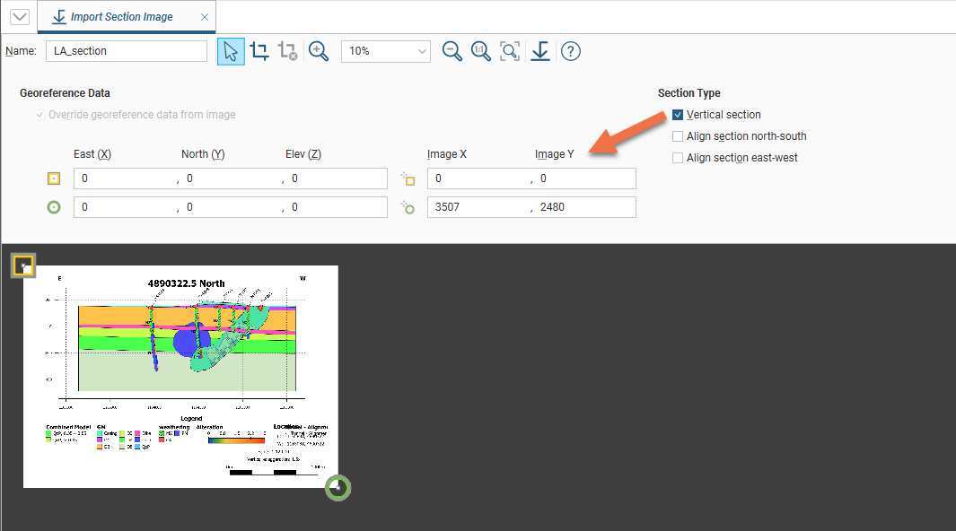 If your image is a north-south or east-west section, enable the corresponding Align section option.