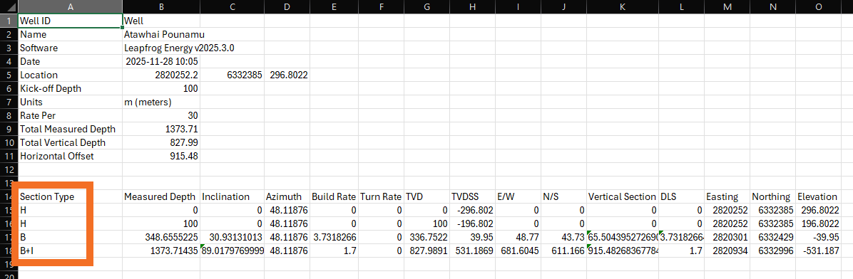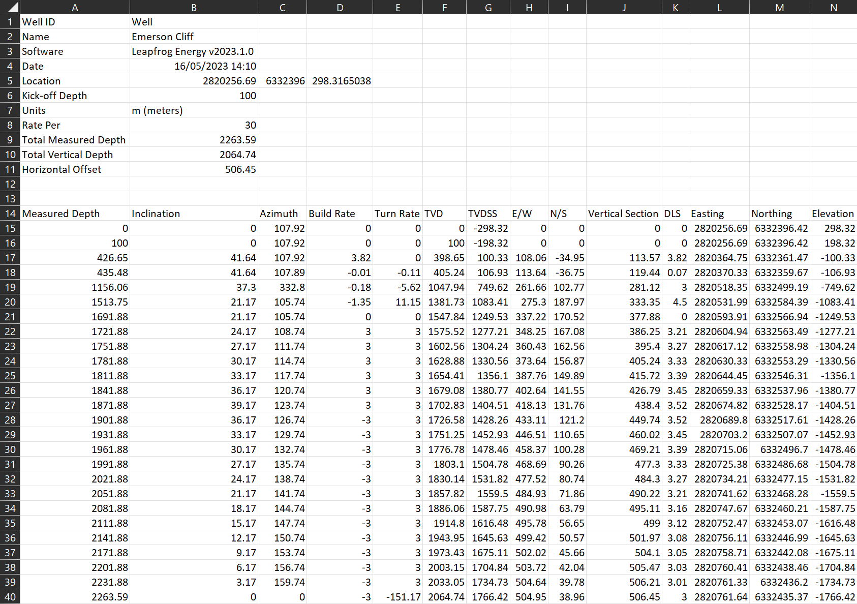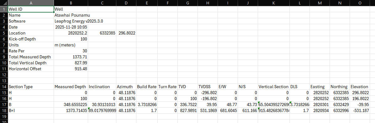 Leapfrog Energy imports planned directional wells from files in *.csv format.