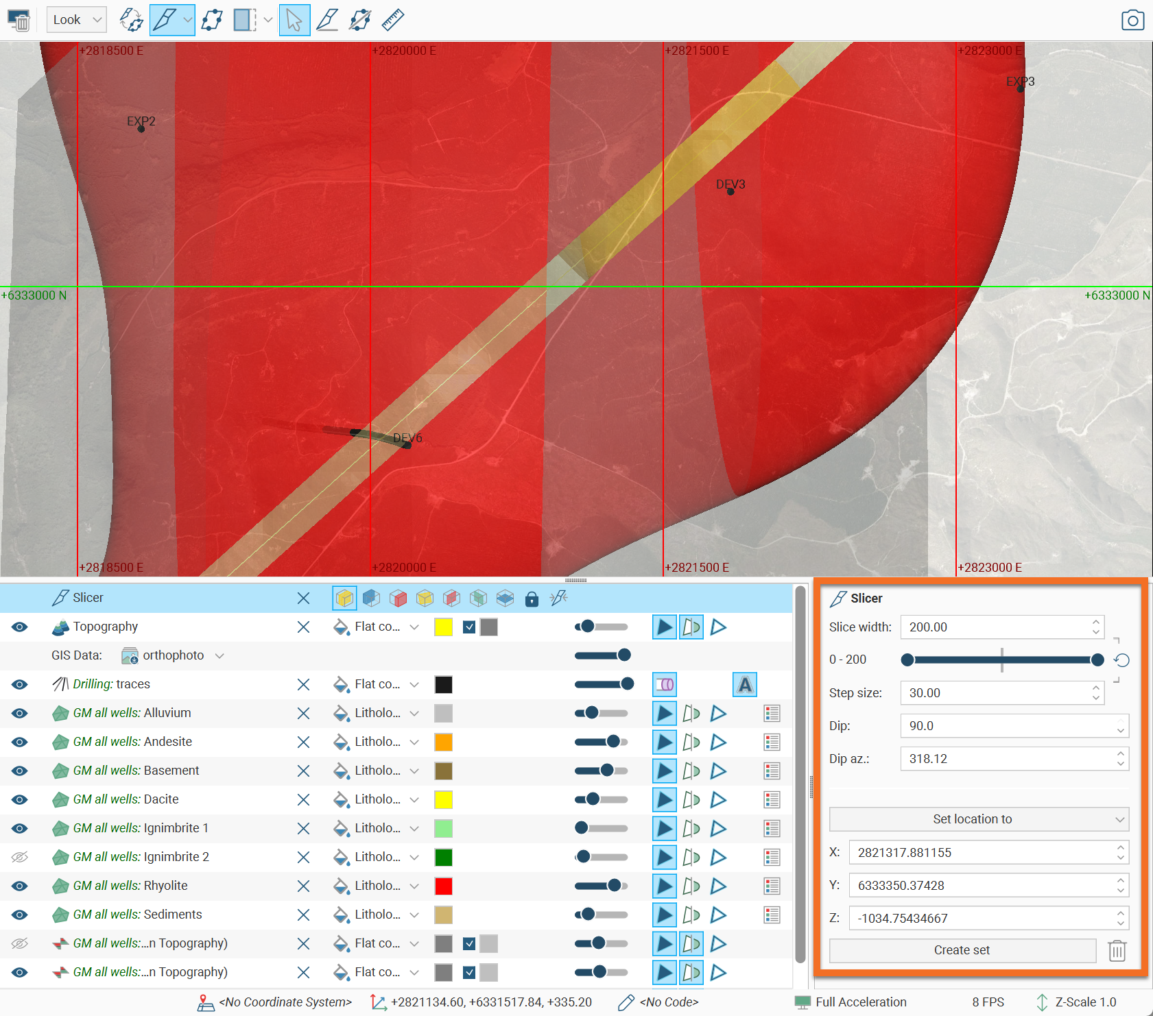 Adjust the slice orientation using the Dip and Dip az. controls in the slicer’s properties panel. You can also use the X, Y and Z fields to adjust the position: