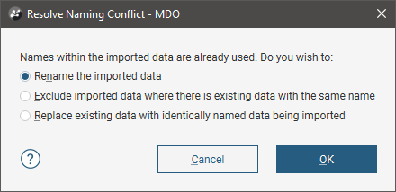 When importing planned drillholes, you can import them into a new group or into an existing group. To import planned drillholes, right-click on the Planned Wells folder or on a group and select Import Planned Drillholes. If the IDs in the file are already in the project, you will be prompted to resolve the conflict: