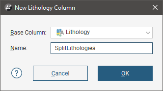 Select the lithology column you wish to define splits for from the Base Column list, then enter a Name for the new lithology column. Click OK.