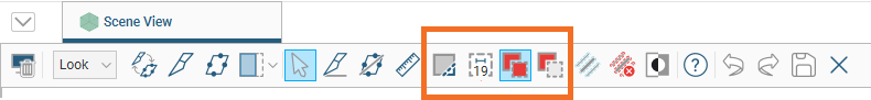 The first four tools in the split lithologies toolbar are the primary tools for selecting intervals in the scene: