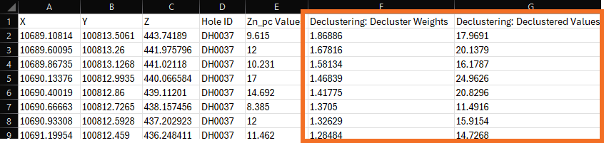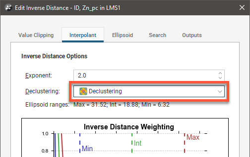 When no declustering object is selected, the inverse distance estimator is the standard inverse distance weighted method.