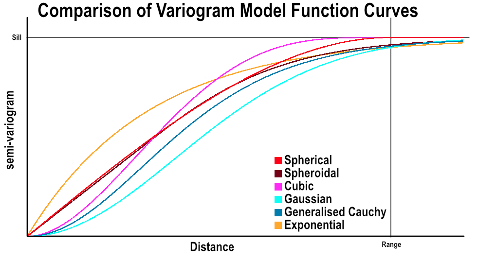 Spherical is suitable for modelling most variables where there is a finite range beyond which the influence of the data should fall to zero. Because the spherical model is piecewise, beyond the range the variogram value is the constant sill.