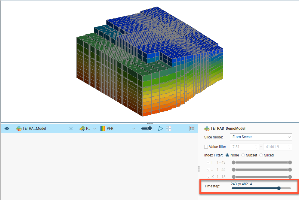 Click and drag the slider or click along the timeline to view the different timesteps available.