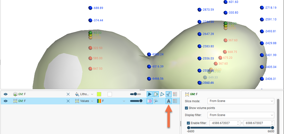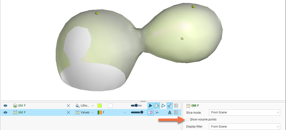 When the volume points are displayed, points with negative values are those outside the surface, while points with positive values are those inside. Show text (