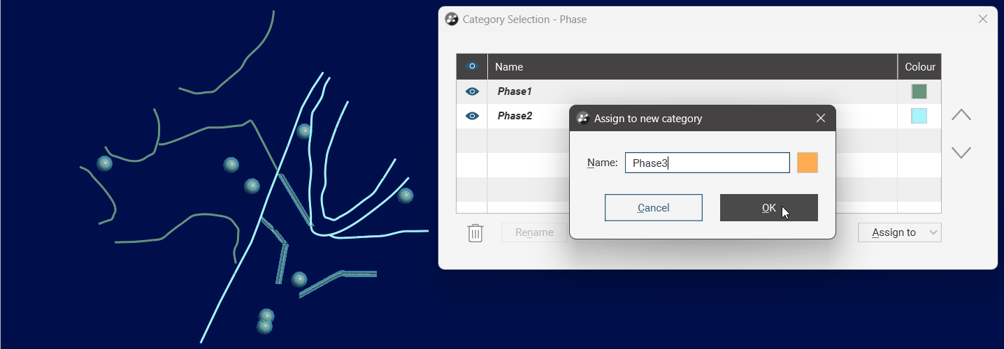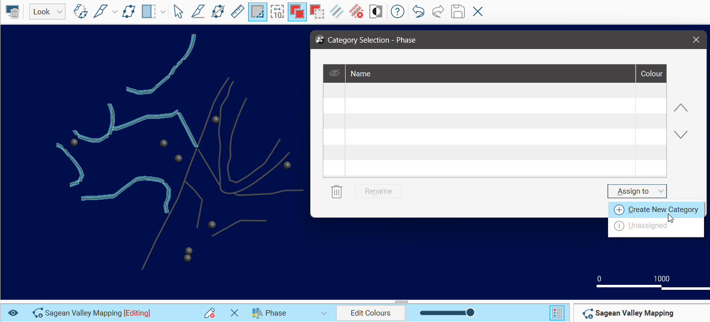 To start adding category attributes to a polyline, right-click on the polyline in the project tree and select New Category Selection. The New Category Selection window will appear: