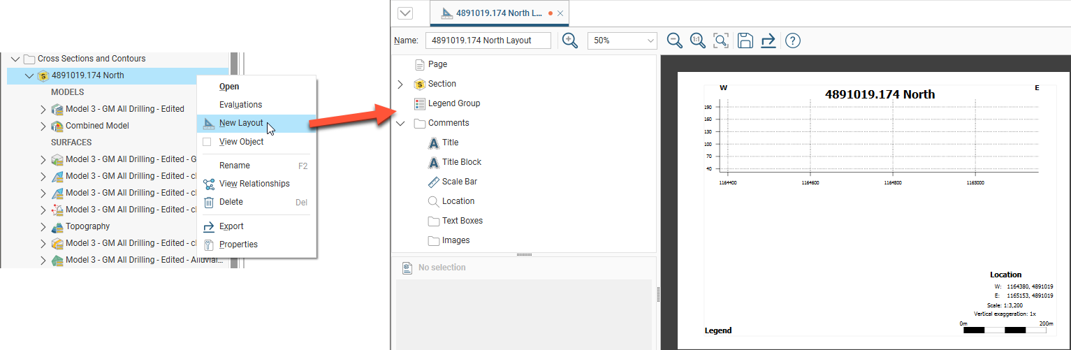 Plan view layouts are similar in most respects to section layouts, except plan views can also have a North Arrow feature added to them from the Comments folder.