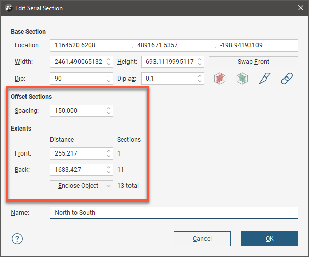 Two buttons in the New Serial Section window let you create a base section that is aligned north-to-south (