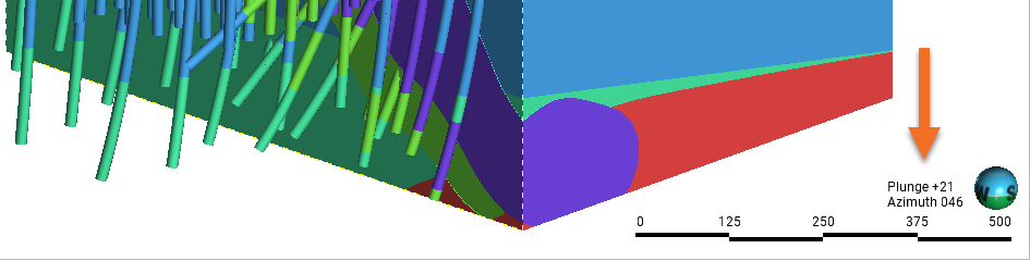 The scale bar, compass ball and viewing angle text are the navigation aids in the lower right-hand corner of the scene window:
