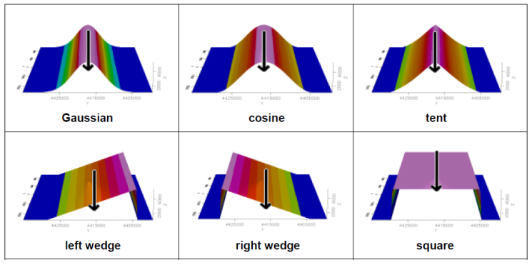 For roll-off method, you may choose from one of six tool shapes, shown below, or select a "constant" value to fill the area. You may use a polygon file to clip the effective area of the Path Edit function.
