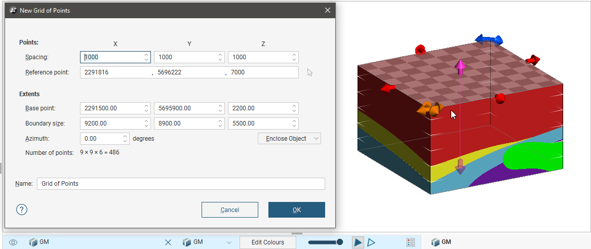 You can create a grid of points that can be evaluated against geological and numeric models and exported for use in other modelling packages. This topic describes creating and working with grids of points. It is divided into: