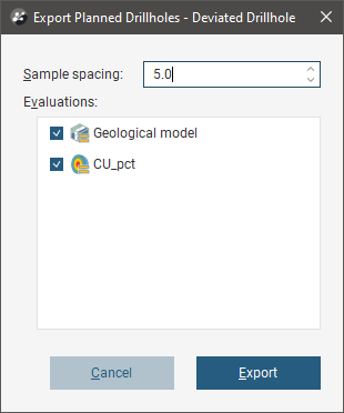 Set the Sample spacing and the evaluations you require, then click Export.