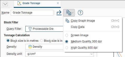 Provide a Name for the grade tonnage graph in the window’s toolbar.