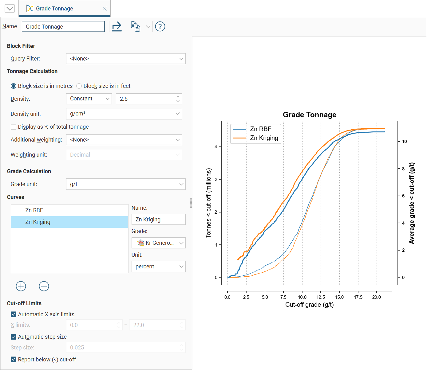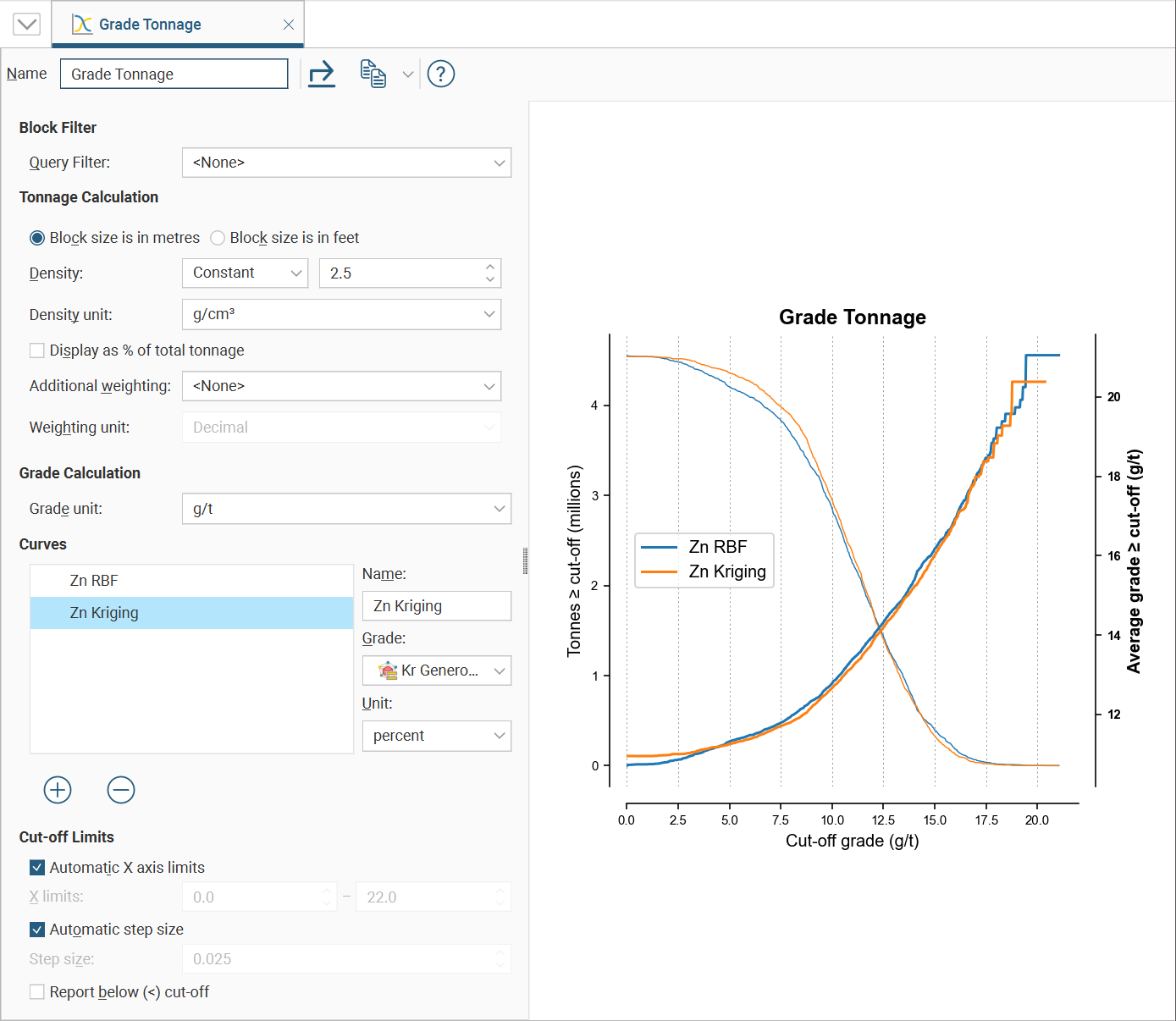 You can click the Add button under Curves to add more grade tonnage curves to the graph.