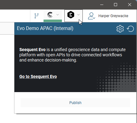- Publishing options are available by right-clicking on a project tree folder or on an object in the project tree and selecting Publish to Evo. There is also a bulk publishing option available from the Evo button next to the user ID menu. See Publishing Data to Seequent Evo for more information.