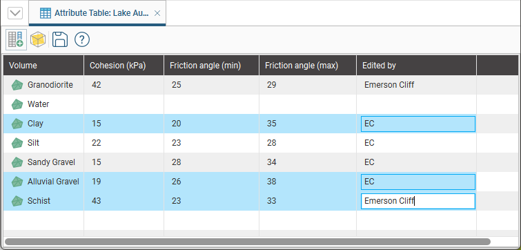 This column order will be used when the attribute table is exported along with the geological model when using the LFM format.