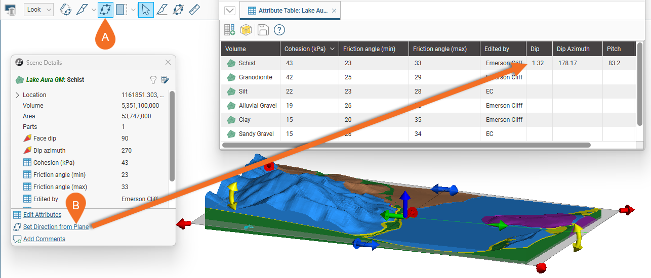 Click the Add Directions button () to add Dip, Dip Azimuth and Pitch columns: