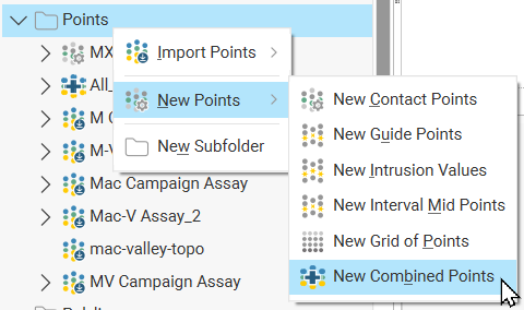 To create a combined points table, right-click on the Points folder and select New Points > New Combined Points: