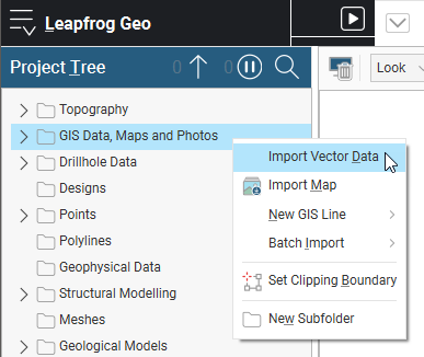 Leapfrog Geo has tools for importing, creating and working with many different types of data, and these tools are available by right-clicking on the different folders in the project tree.