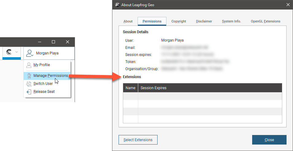 If an object you expect to be able to modify is marked as Restricted, check your permissions to ensure that you selected the required extension when you signed in. Do this by clicking on the user ID menu, then on Manage Permissions.