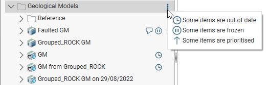 In cases where objects have been imported to the project via a service such as Seequent Central, an object will be marked as out-of-date (