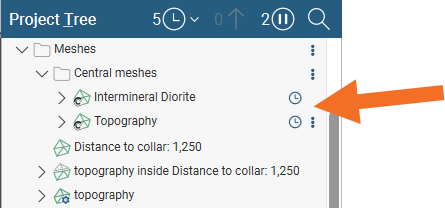 The project tree may also contain restricted objects. Restricted objects were created using features not available in Leapfrog Geo. Restricted objects cannot be viewed, used as the basis for another object or exported. You can, however, delete a restricted object.