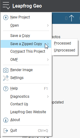 You can also save a copy of a project, save a zipped copy of a project and compress a project. These options are available from the Leapfrog Geo menu: