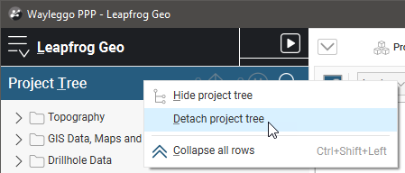 The project tree can also be detached from the main window. To do this, either: