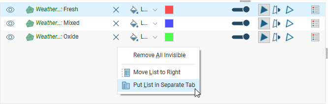 You can also detach the shape list and display it as a tab, which can then be detached from the main window. To do this, right-click in the shape list and select Put List in Separate Tab: