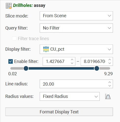 In Leapfrog Geo, you can define query and volume filters for data tables that select a subset of data for future processing; this is described in the Filtering Data topic. Filters can also be used when displaying data in the scene.