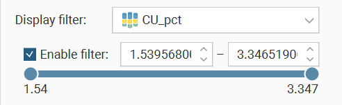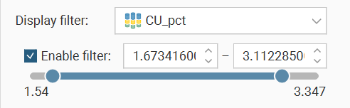 If the column you select for the Display filter is a numeric column, a range slider will be displayed for selecting the values to filter: