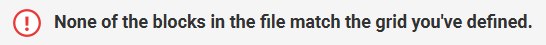 When the grid definition aligns with the data in the file, the message changes to inform you that all the blocks in the file match the grid you’ve defined.
