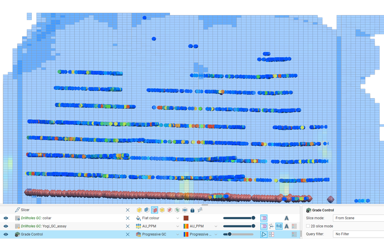 - Make the changes that will affect the block model, for instance adding the grade control data points, updating the estimations that are evaluated onto the block model.