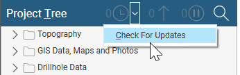 When your project contains objects imported from Central, you can check whether or not updates to those objects are available. To do this, click the button at the top of the project tree and select Check For Updates: