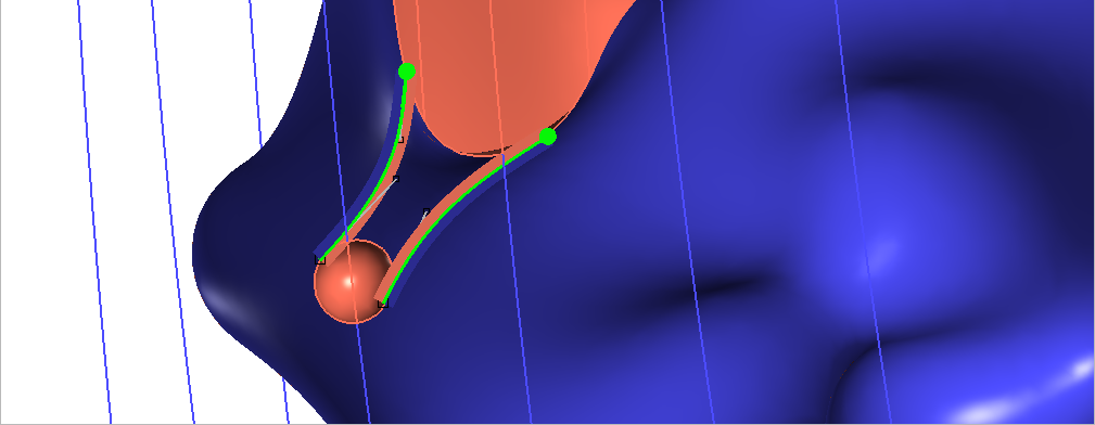How a polyline can be used to edit a surface can be illustrated by the following surface, where a small volume is disconnected from the main surface: