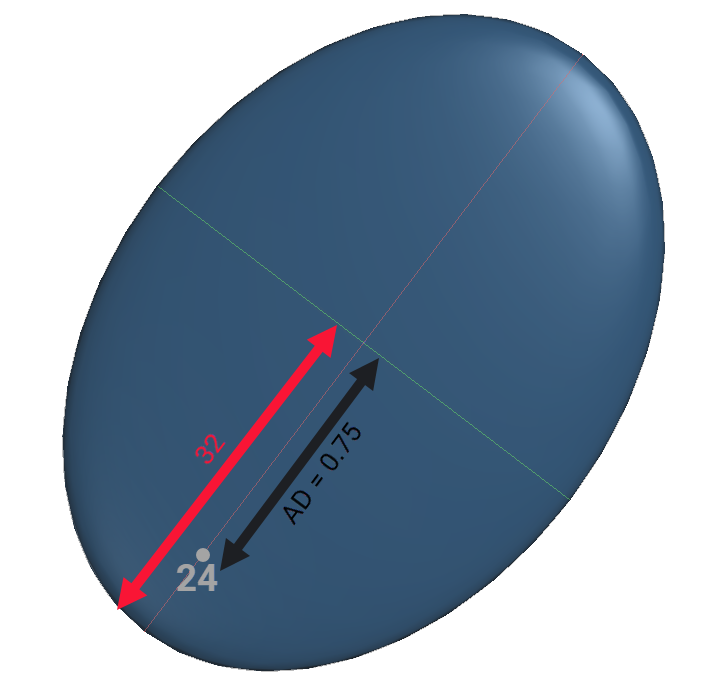 If a point happens to lie on one of the orthogonal axes for the anisotropic trend, it is simple to convert from anisotropic distance to Euclidean distance. The Euclidean distance = anisotropic distance * ellipsoid range for that axis. For instance, if a point lies on the maximum axis for the search ellipsoid with a range of 32, and the anisotropic distance is 0.75, then the Euclidean distance is 24. The calculation for any point not along the axes requires only a little more basic trigonometry to solve.