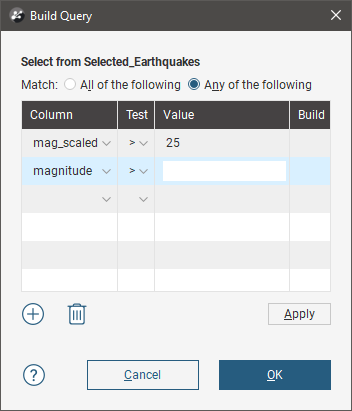 Click on the Apply button to apply the query to the context in which the dialog was opened.